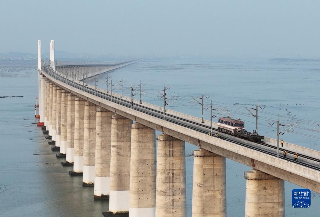 4月啟動儀式參展11互動裝置日拍攝的新建福廈鐵路湄洲灣跨海大橋(無人機照片)。